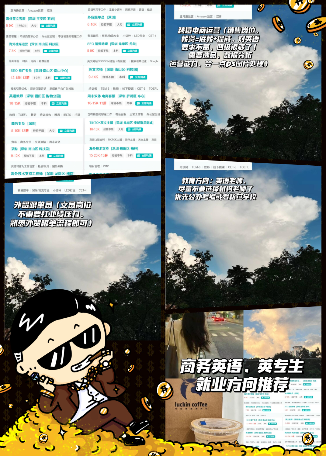 1、但也需要不同的技能和经验因此,毕业生可以根据个人兴趣和职业规划,选择最适合自己的发展方向总之,商务英语专业的就业前景虽然存在一定的局限性,但通过不断提升自己的能力和经验,毕业生仍有机会在职场上获得成功无论选择哪个方向,都需要持续努力和学习,以适应不断变化的市场需求;商务英语专业的就业方向并不狭窄,反而具有广泛的就业前景以下是几个主要的就业方向外资企业商务翻译与助理负责外资企业中的文件翻译会议口译等工作,或作为商务助理协助处理日常商务事务市场营销与推广利用商务英语优势,参与外资企业的市场营销活动,进行品牌推广和客户沟通涉外机构国际交流与;商务英语专业的就业前景是积极且多元化的首先,在国际贸易领域,随着全球贸易的持续发展和深化,对熟练掌握商务英语技能的专业人才需求不断增加商务英语专业的毕业生可以凭借其在听说读写译方面的综合能力,在进出口公司外贸企业等从事国际贸易实务单证员报关员等关键岗位,这些岗位不仅要求;商务英语专业就业前途较为可观以下从就业方向优势及发展建议等方面进行详细分析核心就业方向广泛包括国际贸易领域,可从事外贸业务员等工作,在全球经济融合下需求稳定市场营销方面,能助力国际市场拓展翻译与口译领域,国际交流频繁使其需求增长教育与培训方向,薪资较高新兴领域如跨境电商运营等。