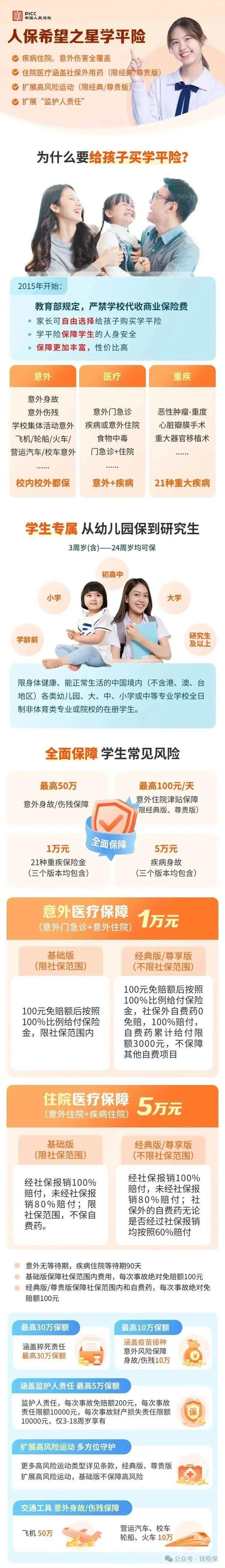 3、选择学平险时可以综合多方面因素来考量,不同保险公司的学平险各有特点1 平安保险品牌知名度高,服务网络广泛其学平险保障范围较广,涵盖意外身故伤残意外医疗以及疾病医疗等在理赔服务方面,流程相对规范,速度也比较快2 中国人寿作为大型国有保险公司,实力雄厚产品在疾病保障上。