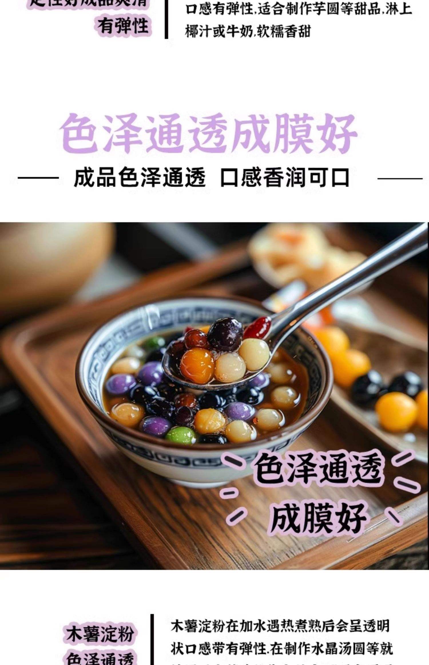 3、1没有淀粉的话可以用生粉红薯粉土豆淀粉面粉等代替木薯粉制作珍珠2木薯粉是用树薯粉做成的,而树薯粉则是从树薯或木薯植物的根部经过提炼得到的淀粉,木薯淀粉蒸煮后形成的浆糊清澈透明,适合于用色素调色3而且口感q弹软滑非常好吃,常用于做奶茶里的珍珠芋圆,没有木薯淀粉的话也可。