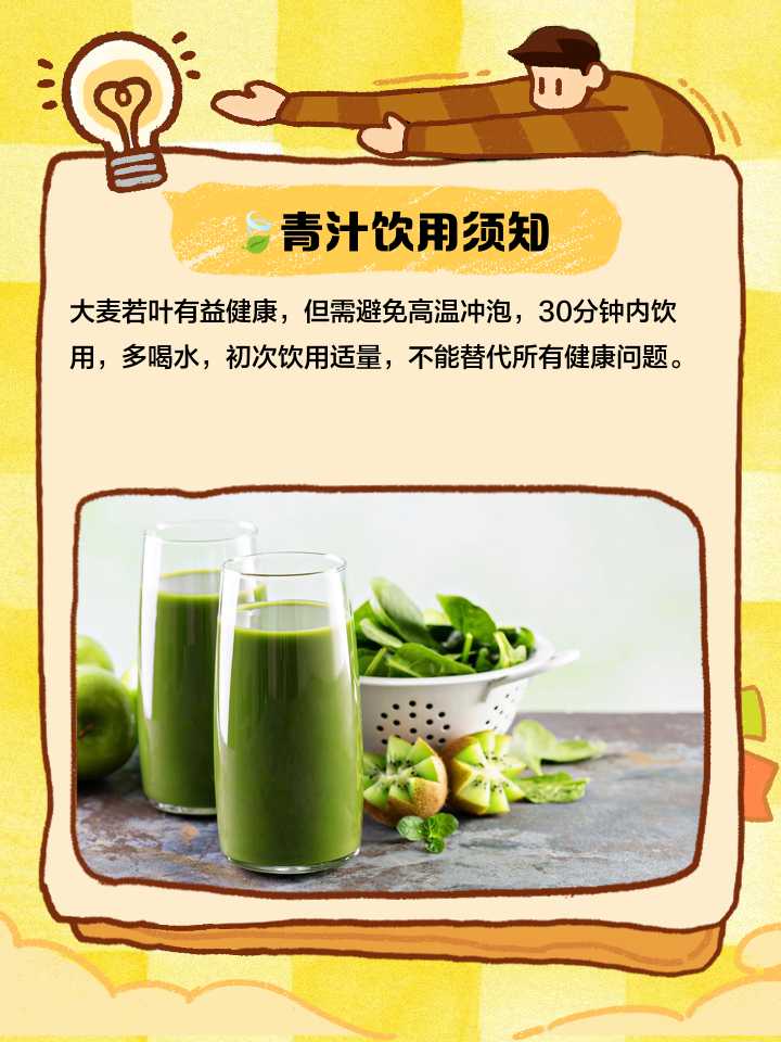 注意事项需避免空腹饮用可能引发的胃酸分泌过多问题,建议搭配少量食物如全麦面包或温水稀释后饮用此外,饮用后需补充足够水分,以促进纤维膨胀和肠道蠕动若存在胃肠道疾病或对青汁成分过敏,需在医生指导下调整饮用方案总结早晨饮用大麦若叶青汁可最大化其营养吸收肠道清洁及代谢促进效果,但。