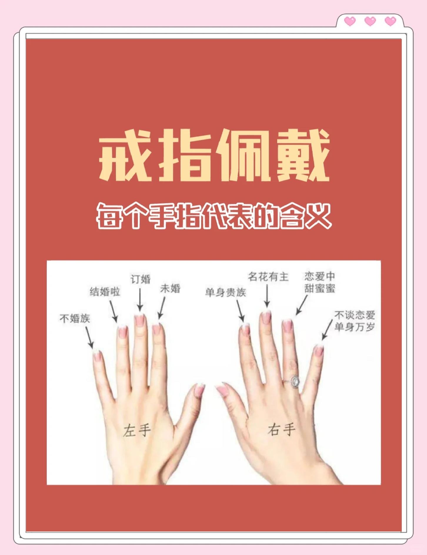 古代的达官显贵都是戴在这个手指上,更能体现出本人的自信 2食指左手食指佩戴戒指,代表着目前处于单身状态,想要结婚,这也是给追求者的一种暗示,说明心中想要追求稳定的生活,摆脱单身的困境 3中指左手的中指戴戒指,说明目前处于热恋期,或者已经和心仪的对象订婚了,是名花有主的意思 4无名指西方。