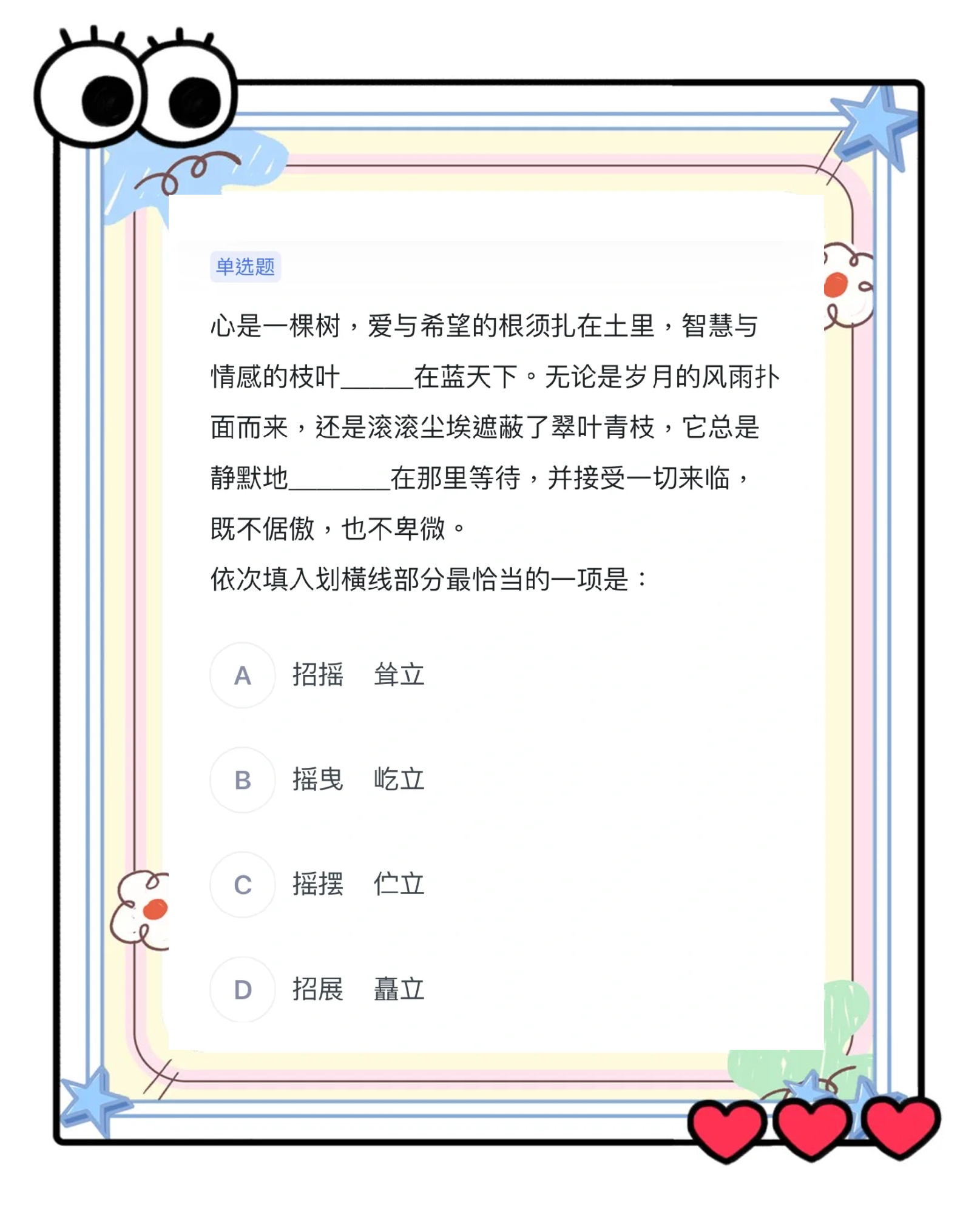 “屹立”这个词语通常用来描述某物或某人稳固地高高地矗立或站立在某个位置,不易动摇关于“屹立”的近义词,我们可以考虑以下几个矗立指高大而笔直地挺立高耸它强调物体的高度和直立的姿态耸立指高高地直立这个词也常用来描述建筑物山峰等高耸的物体挺立指直立,多指持身正直它。