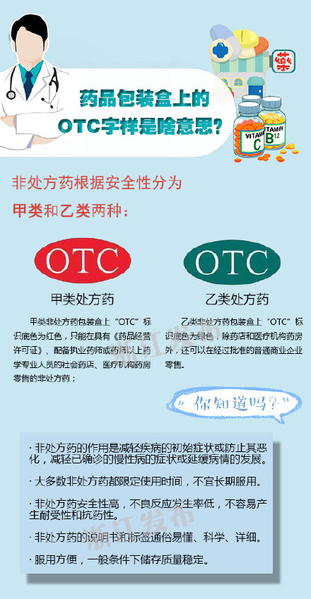 2、OTC代表非处方药,即无需医生处方即可购买的药物这些药物通常用于常见病的自我治疗,如感冒咳嗽消化不良等非处方药的包装上会标注“OTC”字样,以便消费者识别“R”标志通常表示注册商标在药盒上看到“R”标志,说明该药品使用的商标已经在中国商标局注册,受到法律保护,未经授权不得使用相同或;药盒上的OTC是非处方药的缩写以下是关于OTC的详细解释定义OTC是英文Over The Counter的缩写,特指非处方药在我国,非处方药是指消费者可不经过医生处方,直接从药房或药店购买的药品,且这些药品在不需医疗专业人员指导下也能安全使用主要类别非处方药包括饮食补充剂皮肤用药感冒咳嗽药;OTC这个标识代表着“请仔细阅读说明书并按说明书使用或在药师指导下购买和使用”它是国家药品监督管理局从一些副作用小使用安全的药品中挑选出来的,并在药盒上标注红色或绿色标识,绿色标识则表示副作用更小,使用时基本不会出现不良反应在中国,目前只有抗生素水针剂抗真菌药物抗结核药物以及;OTC指非处方药overthecounterOTCdrug,又称为成药,指的是未经处方而可以从药店购买得到的药品,与处方药相对这些药品临床应用时间较长药效确定药物不良反应较少,患者不须过多的专业知识,仅凭药品说明书和标签就可以安全使用R药的“注册商标”,指这个商标已经在中国的商标局注册,可以作。