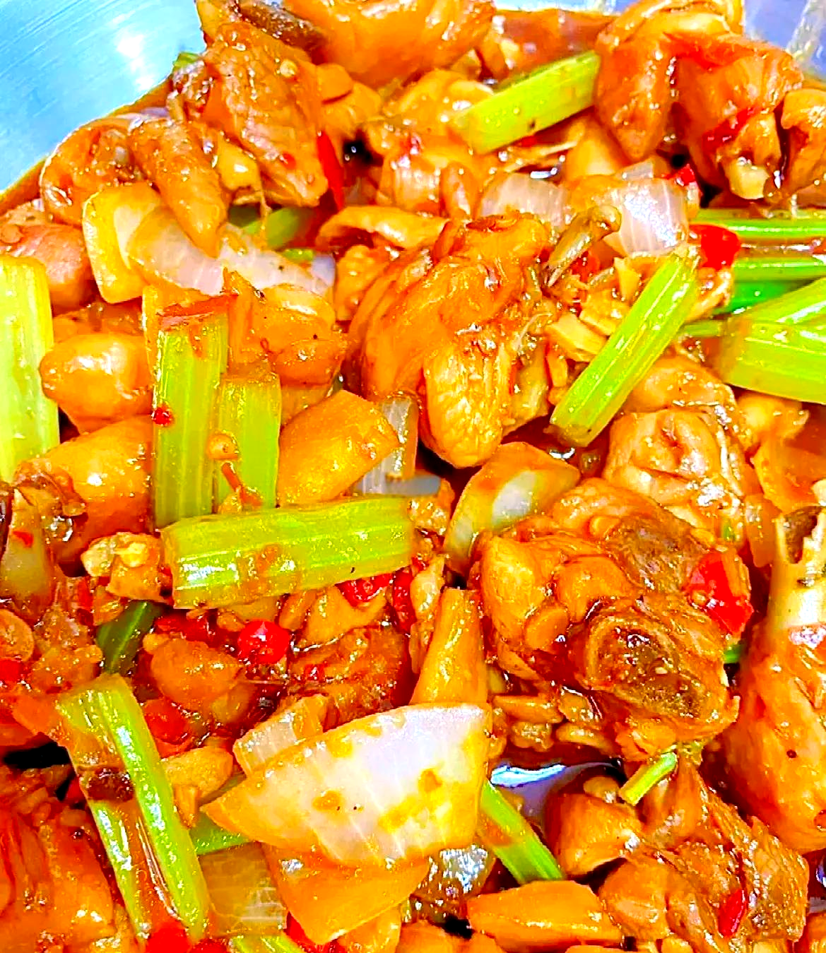 选用本地公鸡剁块,准备辣椒葱姜蒜等食材热锅放油,炸香花椒八角和红辣椒,加入鸡块迅速翻炒变色后加醋葱继续翻炒,再加老抽料酒和少许白开水,放入香叶桂皮慢炖15分钟最后加入鲜辣椒蒜和香菜翻炒均匀即可出锅家常做法可加入土豆片木耳等搭配 抢首赞 评论 分享 举报。