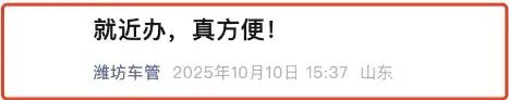 山东潍坊的摩友也乐开了花,“就近办,真方便!”的政策让大家少跑腿。