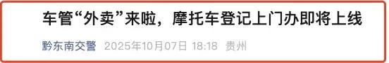 在贵州黔东南,“车管外卖”直接送到家门口——摩托车登记上门办服务即将上线。