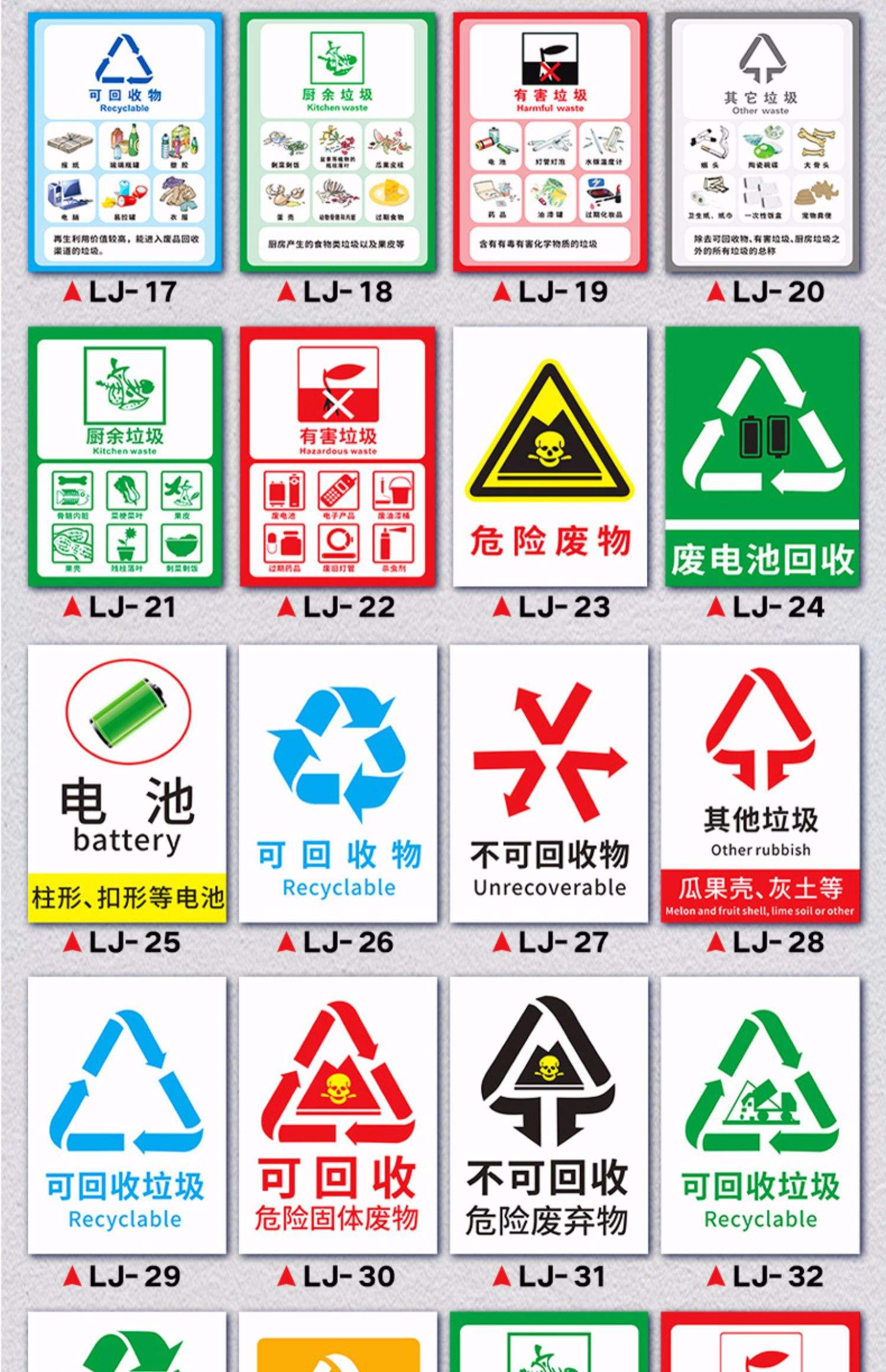12、垃圾桶的四种分类及对应的垃圾类型如下1 可回收物 定义表示适宜回收和资源利用的垃圾包括纸类塑料玻璃织物和瓶罐等收集容器颜色蓝色这些垃圾通过回收再利用,可以减少资源浪费,降低环境污染2 有害垃圾 定义表示含有害物质,需要特殊安全处理的垃圾包括电池灯管和日用。