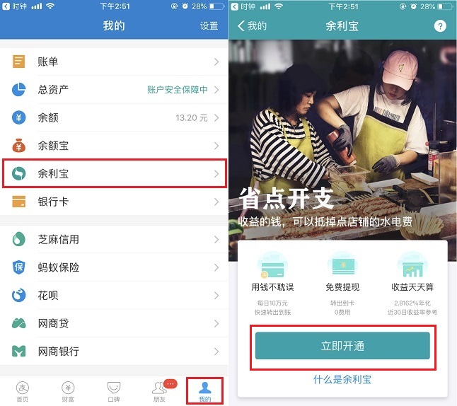 具体如下1 首先我们打开手机中的支付宝2进入主界面之后点击右下角“我的”3 然后在个人界面中点击“余利宝”4之后我们就会进入余利宝界面 了我们点击“立即开启”5 先勾选“同意承诺”,之后再点击“确认开启”即可以上就是手机支付宝开启余利宝让让余额自动转入余利宝中的方法。