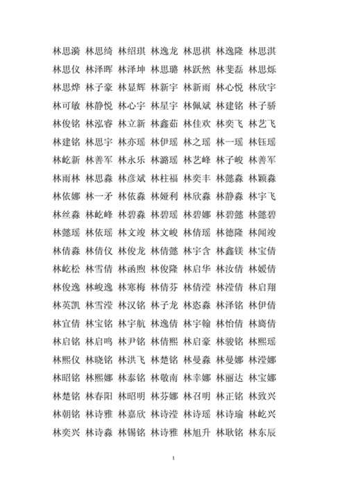 林姓是一个大姓,全国人口数量众多,每年诞生的男孩人数很多,因此给林姓的男孩取名字绝对是一个老大难的问题一个名字是会跟随着孩子的一生,很多父母都非常重视孩子的名字那么姓林的男孩到底应该如何取名呢?我们一起来看看林姓男孩的名字大全吧林姓男孩名字大全 01林朝汉 林宣蓦 林半松 林一珂 林。