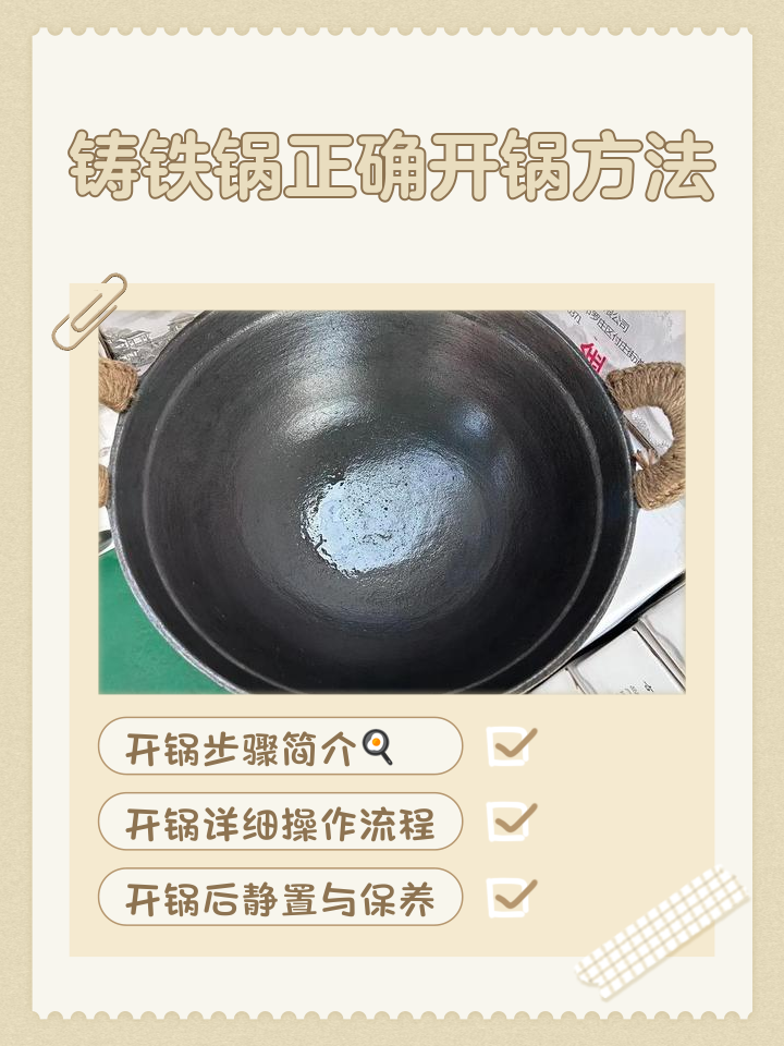 9、新铁锅初次使用前,需彻底清洁并高温开锅以形成油膜保护层新买的铁锅表面通常带有工业防锈油或细微铁屑,直接使用可能影响健康处理重点在于去杂质高温钝化形成防锈油膜三步以下是具体流程1清洁除垢 先用热水冲刷锅体,用软布蘸取少量中性洗洁精擦洗内外壁注意避开木质锅柄以免受潮清洗后。