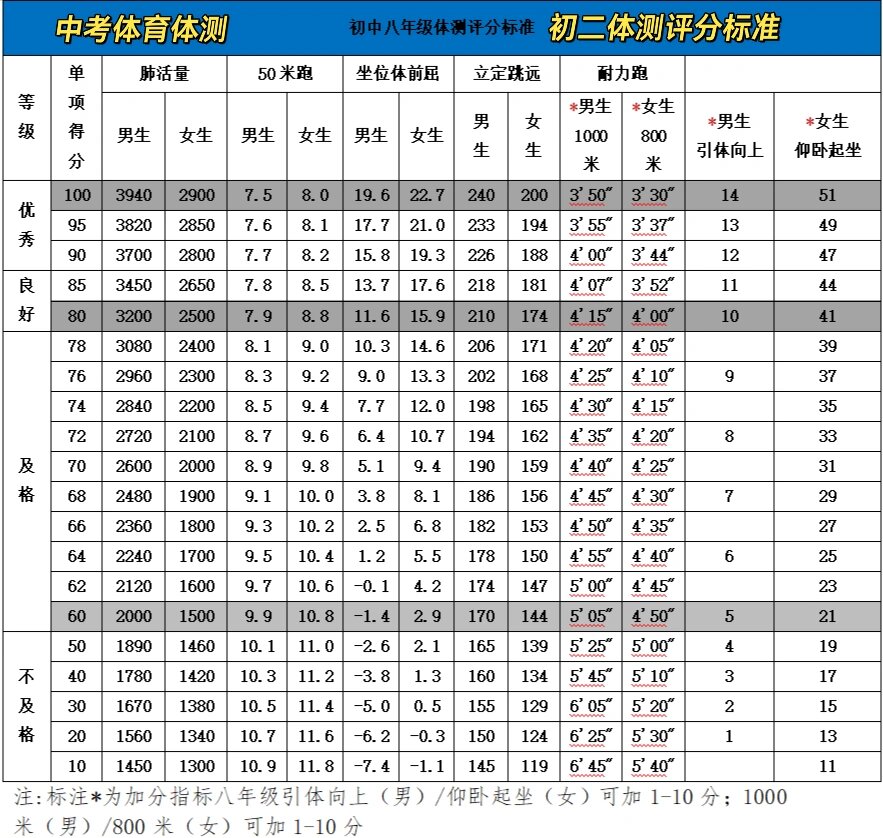 17、1000米体测成绩标准如下一大一大二男生 及格成绩60分4#3932#34即4分32秒良好成绩80分3#3942#34即3分42秒二大三大四男生 及格成绩60分4#3930#34即4分30秒良好成绩80分3#3940#34即3分40秒详细说明及格标准对于大一大二的男生,如果。