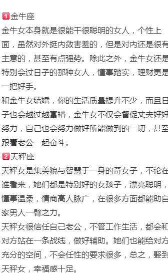 1 金牛座男人偏爱稳重过日子的女性 金牛座的男人在选择伴侣时,寻求的是稳定性他们不喜欢过于嘈杂和不安定的元素,因为这会让他们感到不知所措金牛座倾向于内敛,不擅长处理情绪化的伴侣,因此他们倾向于欣赏那些懂得控制情绪稳定可靠的女性2 金牛座男人渴望有一个体贴的伴侣和教育孩子的。