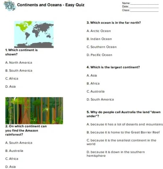 亚洲Asia 非洲 Africa 欧洲 Europe 美洲Americas 大洋洲Oceania 北极洲Arctic island 南极洲Antarctica 大西洋Atlantic 太平洋Pacific 印度洋India Ocean 北冰洋The Arctic Ocean 好了,正确率100%哦。