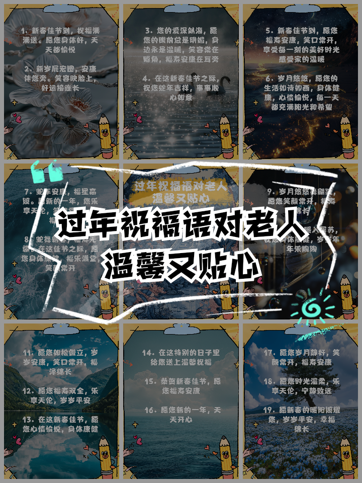给长辈的春节祝福需体现尊重与关怀,可从不同角度表达语言风格上,正式庄重又不失温馨亲切为宜若想表达健康祝福,可这样说“新春到,愿您新的一年身体硬朗似苍松,疾病远离乐融融每天都能精神饱满,享受幸福安康的岁月”感恩类祝福示例“在这喜庆的春节,回首过往,感恩您一直以来的关爱与教导您的智慧如明灯。