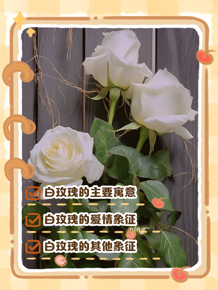 白玫瑰代表的含义有很多,具体取决于赠送者的心态和情境以下是一些可能的意思1 如果是在热恋中,女友送白玫瑰,这可能是她对你们爱情的肯定和期待,表达她对你的深深爱意,希望你们能一直走下去2 对于已经结婚的夫妻,白玫瑰可能代表的是“你是我的”,是在宣示对你的所有权和爱意,也是在。