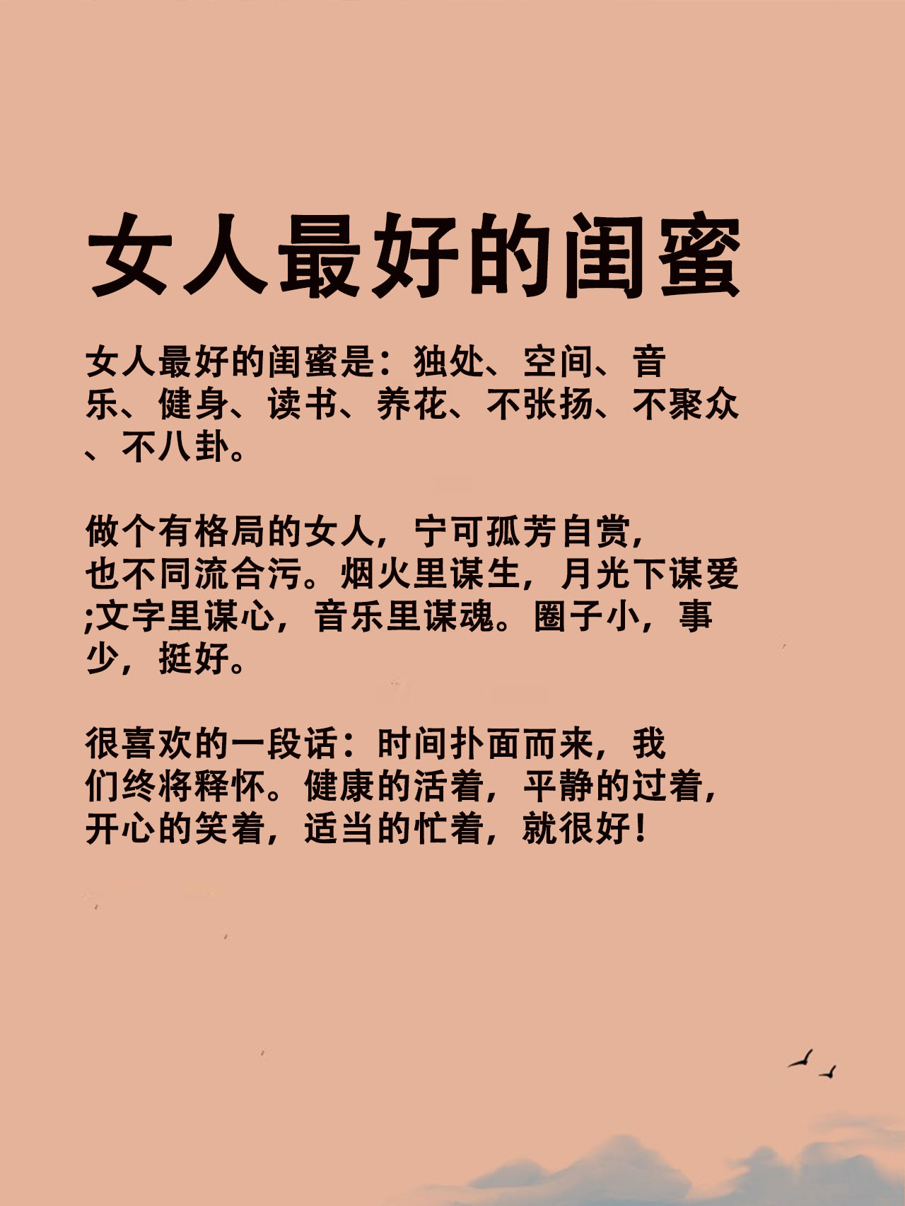 1 闺蜜,是许多女孩子最亲密的知己她们不仅是最好的朋友,也是彼此的知音心灵伴侣2 闺蜜的含义是,彼此间信任尊重包容和理解,永远都在一起,分享彼此的快乐和悲伤,互相照顾,互相扶持3 闺蜜关系如同一种珍贵的宝藏,可以让我们的人生更加充实美好4 闺蜜之间的友谊不是一朝一夕可以。