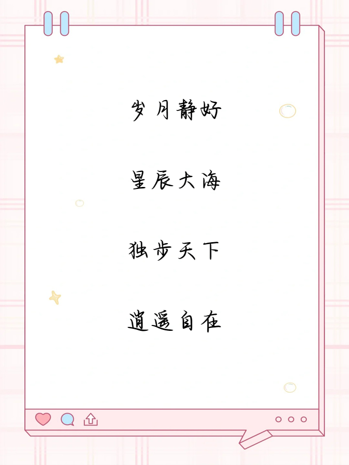 以下是一些简单且好听的四个字的微信名字,适合女性使用花事未了寓意生活中的美好如同未了的花事,充满希望和生机自若清风形容性格自在如风,不受拘束,清新自然离雨弥巷雨后的巷子弥漫着清新的气息,带有一种朦胧美笑饮孤鸿寓意乐观豁达,即使面对孤独也能以笑面对淮上樱花樱花盛开在;1 quot水木清华quot这个名字适合女生使用,其音韵优美,易于发音它意味着清新的园林景色,用作文微信昵称,暗示着女生美丽迷人,让人喜爱这是一个非常好听的四个字微信昵称2 quot岁月流歌quot适合追求高雅的女士,这个名字体现了时间的流逝与艺术的融合quot眉目不知秋quot一个更具诗意的昵称,形容女性深沉而神秘quot风月瘦如刀quot展示了。