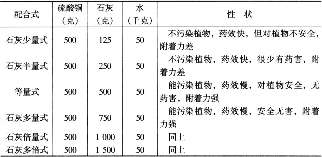 石灰CaO100克 水10升 步骤1 将硫酸铜和石灰分别溶于两个不同的容器中,加入少量水搅拌均匀2 将硫酸铜溶液慢慢倒入石灰溶液中,同时搅拌均匀3 最后加入足够的水,混合均匀后就可以使用了注意事项 在混合时要保持搅拌均匀,以防溶液分层或沉淀 配制好的波尔多液应尽快使用。