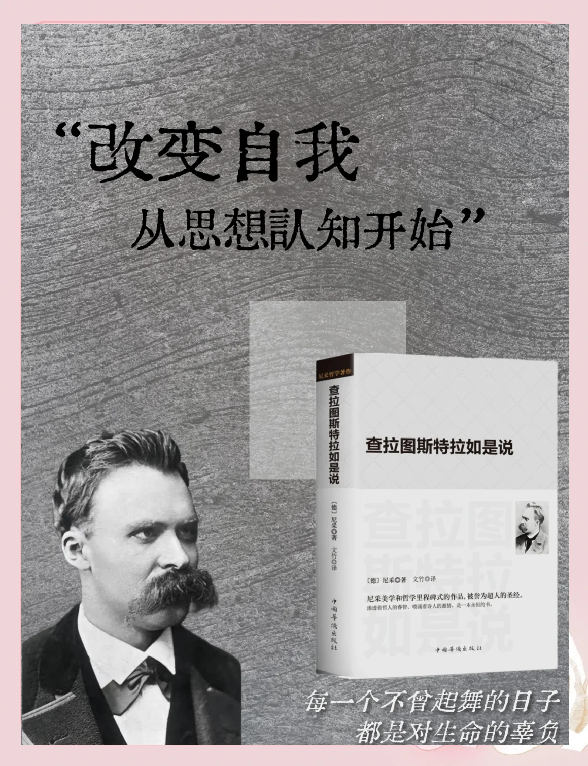 4、坦诚来说,书的大部分我并未读懂,只有个别句段确有理解和共鸣尼采似乎真发现了什么绝大的秘密和至奥的真理,但像一个疯子一样,在书里面化身为扎拉图斯特拉,诗情澎湃,大喊大叫,逻辑混乱,惹得人头昏脑胀,却又如当头棒喝,激人大悟如是说比红楼梦难懂得多,因为尼采讲的不是故事。