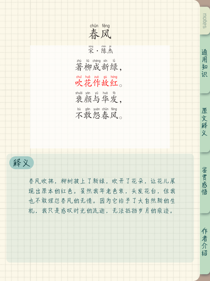 “春风送暖入屠苏”的意思是和暖的春风吹来了新年,人们欢乐地畅饮着新酿的屠苏酒春风送暖形容春天的温暖气息吹拂着大地,带来了新年的开始入屠苏这里的“屠苏”指的是屠苏酒,一种在古代过年时常饮的酒这句话描绘了人们在春节期间,欢聚一堂,共饮屠苏酒的欢乐场景这句诗出自宋代诗人王。
