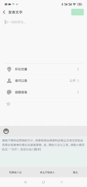 微信怎么发长文字朋友圈不被折叠有一下三种方法1在复制了大段文字后,先在朋友圈内容框里随便打几个字,然后长按全选粘贴,替换成你想发表的内容,这样就能“骗”原创保护机制,不会被折成一行了这个方法最简单,但仅适用于安卓手机,而且需要704以下版本的微信,最新版微信已经修复了这个BUG2需要将你要发的大段内容。