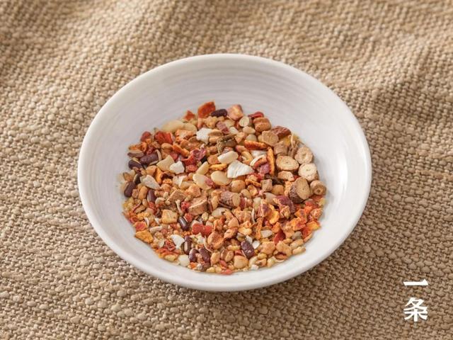 它的用料简直太狠了,足足有11种不同的食材:赤小豆、大枣、橘皮、薏苡仁、白扁豆、黄苦荞、栀子、茯苓、甘草、山药、山楂。