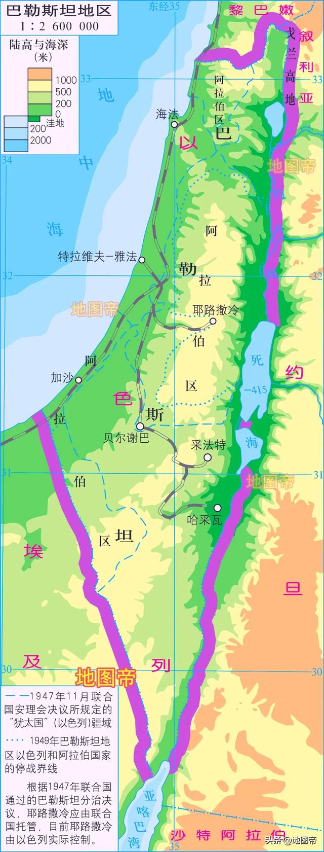 以色列与巴勒斯坦地区(以下简称巴以地区),面积约2.7万平方千米,与北京+天津相当。在这不大的地方,挤着两个国家,而这里地貌之复杂多变,地球上再找不出第二处。