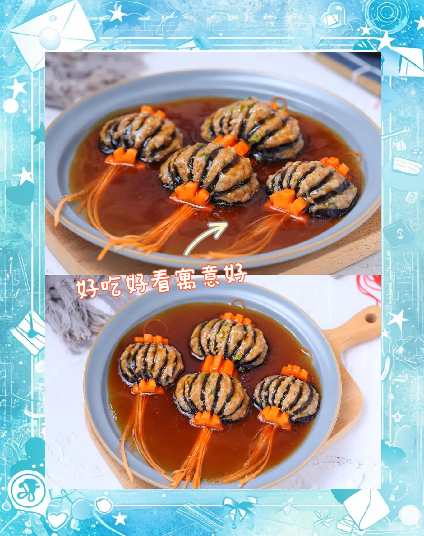 做法一虾滑灯笼茄子年夜饭创意版材料长茄子1根虾滑150g或鲜虾200g剁碎鸡蛋清1个淀粉1小勺白胡椒粉3g白糖5g食用油适量步骤茄子处理将长茄子洗净,间隔2~3mm切薄片底部不切断,形成可展开的“灯笼骨架”若茄子较粗,可先纵向剖开再切片虾滑调制虾滑中加入。