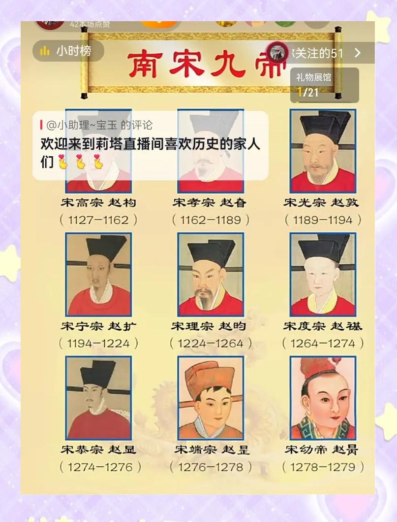 南宋皇帝列表介绍 南宋是中国历史上一个重要的朝代,其皇帝在位期间的政治经济和文化发展,对后世产生了深远的影响以下是南宋的皇帝列表及简要介绍1 高宗赵构南宋开国皇帝他在建炎元年建立了南宋王朝在位期间,他实行了一系列措施来恢复国家稳定和发展经济高宗在位时期的特点和影响赵构在位;12宋光宗赵惇,南宋第三位皇帝,庙号光宗,在位5年,享年54岁,死后谥号循道宪仁明功茂德温文顺武圣哲慈孝皇帝13宋宁宗赵扩,南宋第四位皇帝,绍熙五年1194年,宋光宗被逼退位,由赵扩继位,第二年改年号为“庆元”宋宁宗在位30年,享年55岁其统治期间,宋朝比较安定,国家比较富裕去世后谥号为法天备道纯。