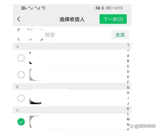 在新建群发页面中,勾选你想要发送消息的好友可以一次勾选多个好友,勾选完成后点击右上角的“下一步”编辑并发送消息在下一步页面中,你可以编辑你想要发送的内容确保内容准确无误后,点击“发送”按钮即可将消息群发给所选的好友通过以上步骤,你就可以在不建立群组的情况下,使用微信的群发。