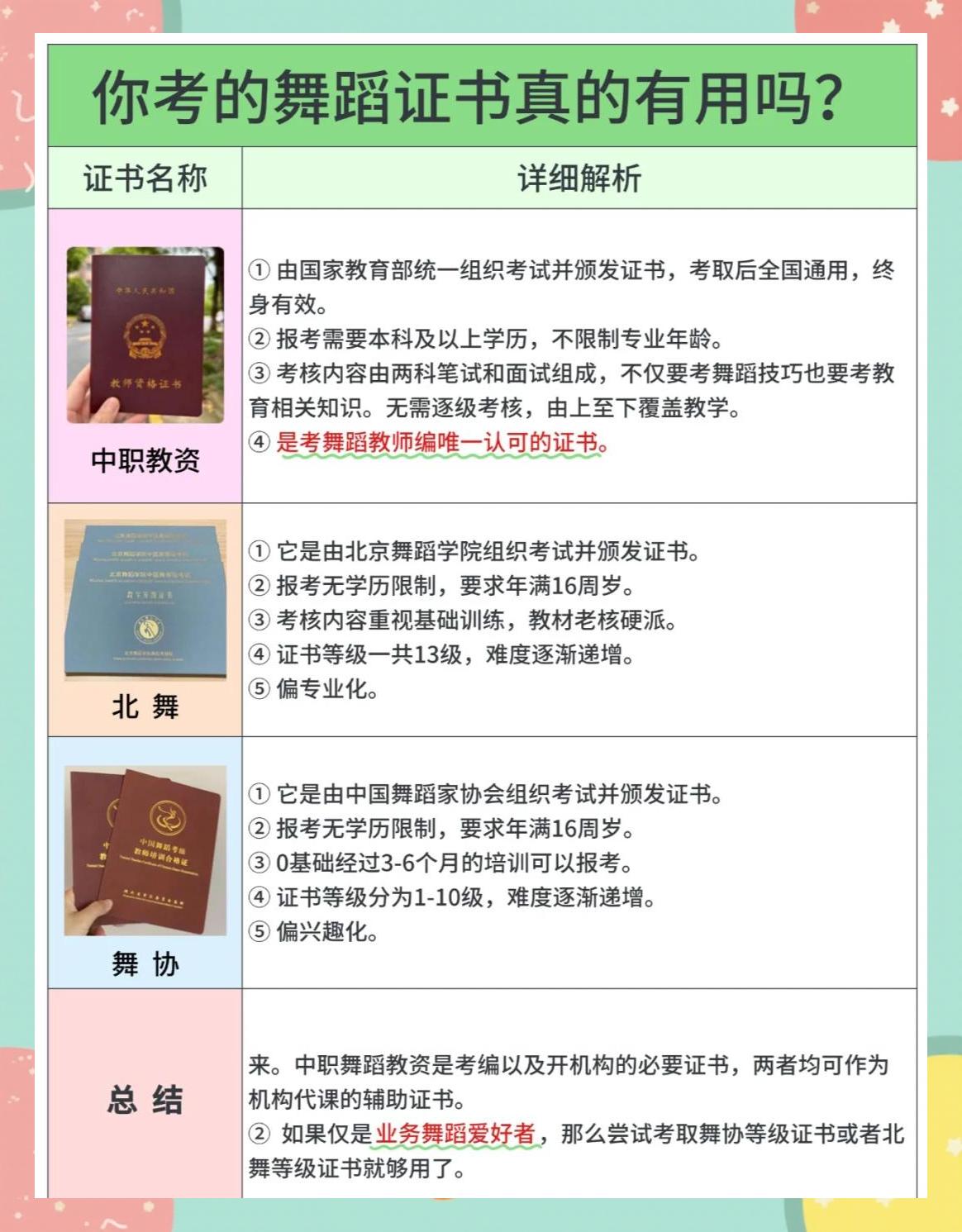 国家一级舞蹈证书中国舞蹈艺术中的最高级别证书,代表舞者在技巧和表演能力上的深厚底蕴,通过严格面试表演和专业知识考试方可获得中国舞蹈金奖中国舞蹈界最重要的奖项之一,评选标准严格,要求舞者在技术和表演等方面取得非凡成就,并在舞蹈界享有较高声誉中国舞蹈优秀演员表彰在舞蹈表演中有突出;中国舞蹈家协会中国舞蹈考级证书也是国家承认的舞蹈考级证书之一,其考级内容涵盖了芭蕾舞现代舞民族民间舞等多种舞蹈形式,对于推广舞蹈艺术提高青少年儿童的身体素质和文化素养具有重要意义此外,中国歌剧舞剧院中国舞考级证书也是国家承认的舞蹈考级证书之一,其考级内容主要为中国古典舞和民族民间舞;1 在中国,国家认可的三个主要舞蹈证书分别由北京舞蹈学院中国舞蹈家协会和中国歌剧舞剧院颁发2 舞蹈考级证书分为两大类表演级别证书和教师资格证书在全国范围内,北京舞蹈学院舞蹈考级证书和中国舞蹈家协会考级证书具有较高的认可度此外,一些地方协会或组织也会颁发类似的证书,这些通常被视为;国内舞蹈考级,国家承认的舞蹈证书有哪些舞蹈考级证书只是一个行业的职业标准,不能 做为国家级标准来使用目前阶段国家认可的 舞蹈证书有一北京舞蹈学院舞蹈考级证 二中国舞蹈家协会考级证 三各地方协会或团体组织的舞蹈证书 中国舞蹈家协会中国舞蹈家协会,曾名中华全国舞蹈工作者协会 中国;中国舞的考级证书有三种,分别由北京舞蹈学院中国舞蹈家协会中国歌剧舞剧院发证,这三种考级证书均受国家承认具体来说北京舞蹈学院作为中华人民共和国第一所专业舞蹈学校,北京舞蹈学院颁发的考级证书具有高度的权威性和专业性中国舞蹈家协会简称中国舞协,是中国各民族舞蹈家组成的专业性人民团体;国家认可的3个舞蹈证书分别是北京舞蹈学院舞蹈考级证该证书由北京舞蹈学院颁发,是国家承认的正规中国舞考级证书之一它代表了学生在舞蹈学习和表演方面达到了一定的水平中国舞蹈家协会考级证这也是国家承认的另一种正规中国舞考级证书,由中国舞蹈家协会颁发该证书同样能够证明学生在舞蹈领域的成就和水平中。