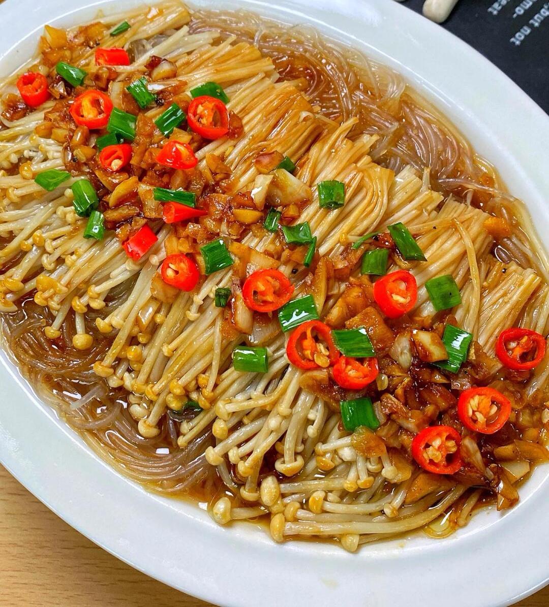 1首先,将金针菇的根部切掉,然后将其整齐地摆放在盘中2在一个小碗中,加入适量的生抽蚝油和香油,再倒入清水搅拌均匀,制成调味汁将蒜末切得细小备用3在锅中加热油,待油温适宜时,放入蒜末用小火炒香,随后加入适量的糖和盐继续翻炒4将炒好的蒜蓉均匀地撒在金针菇上,然后将调好的调味汁均匀地淋在金针菇上5最后,将准备好的金针菇放入蒸锅中。