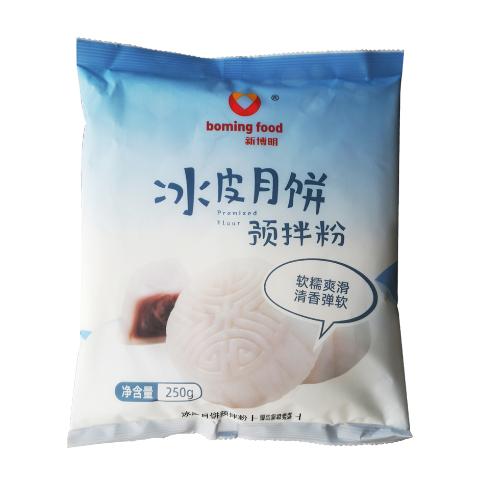 3、冰皮紫薯红薯月饼 食材 西米,紫薯,红薯,面粉 做法 1150克西米,加30克白糖加160克温水,搅拌均匀放着让它软化半小时 2蒸好的紫薯放糖,搓成球备用 3将软化不到位的西米放到破壁机再次榨两分钟,倒出来加上适量面粉搓成面团,捏出一小块,包起紫薯红薯,用模具印出月饼形状,上锅蒸15分钟就可以品尝;会爆浆的黑巧流心奥利奥冰皮月饼冷藏一会儿再吃~黑巧流心太好吃啦牛奶180g,玉米油20g,搅拌至完全乳化,糯米粉40g,粘米粉30g,澄粉30g,0卡糖20g,加入所有粉类除了调色用的粉,搅拌至无颗粒状,过筛,盖保鲜膜,用牙签扎几个孔,微波炉高火5分钟,或者水开蒸20分钟黑巧克力酱挤入流心模具,冰箱冷冻一夜,脱模后;冰皮月饼,是传统中国中秋节食品,无需烘烤,工艺简单,节约能源口感酥软滑爽,略有弹性,色彩洁白如雪这款预拌粉制作的冰皮月饼格外简单,新手都可以制作哟 食材明细 主料 冰皮预拌粉200克 紫薯月饼馅料500克 辅料 熟糕粉300克 做法步骤 1准备200克开水 2按11的比例倒入200克冰皮预拌粉 3;制作冰皮月饼需要的材料主要包括糯米粉澄粉淡奶牛奶以及各种调味粉与调料1 主要粉类材料糯米粉是冰皮的主要成分之一,提供月饼皮的基础质地和口感澄粉也称为小麦淀粉,用于增加冰皮的透明度和细腻度2 液体材料淡奶增添风味和奶香,使冰皮口感更加浓郁牛奶用于调节面团的。