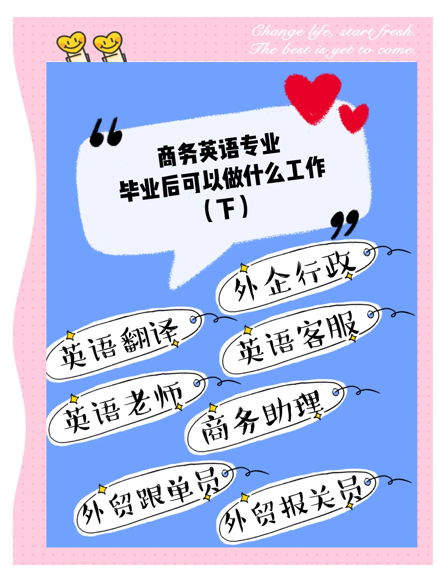 就业率保持高位即使在近年来大学生就业普遍不景气的情况下,大多数院校英语专业毕业生的就业率仍然保持九成左右,这进一步证明了应用英语专业就业前景的乐观性综上所述,应用英语专业就业前景广阔,未来发展潜力大毕业生可以根据自己的兴趣和职业规划,在多个领域找到合适的职业岗位;应用英语专业就业方向广泛,涵盖多个领域,具体如下教育领域主要岗位有中小学英语教师培训机构讲师课程顾问要求具备扎实英语语言能力教学组织能力及跨文化沟通能力薪资稳定,适合热爱教育行业的人国际贸易与商务领域岗位包括外贸业务员翻译口笔译跨境电商运营外贸跟单员需具备商务英语应用能力国际贸易实务知识。