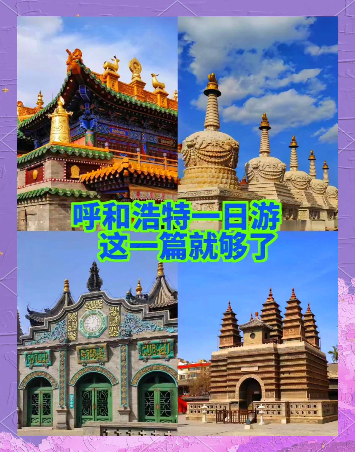 17、呼和浩特是一座充满草原文化和蒙古族文化底蕴的名城,拥有众多值得一游的旅游景点以下是呼市旅游攻略中必玩的景点1 大召寺 简介大召寺是呼和浩特市的标志性景点之一,历史悠久,建筑风格独特,是藏传佛教在内蒙古地区的重要寺庙游客可以欣赏到丰富的佛教艺术和深厚的文化底蕴特色大召寺主要有。