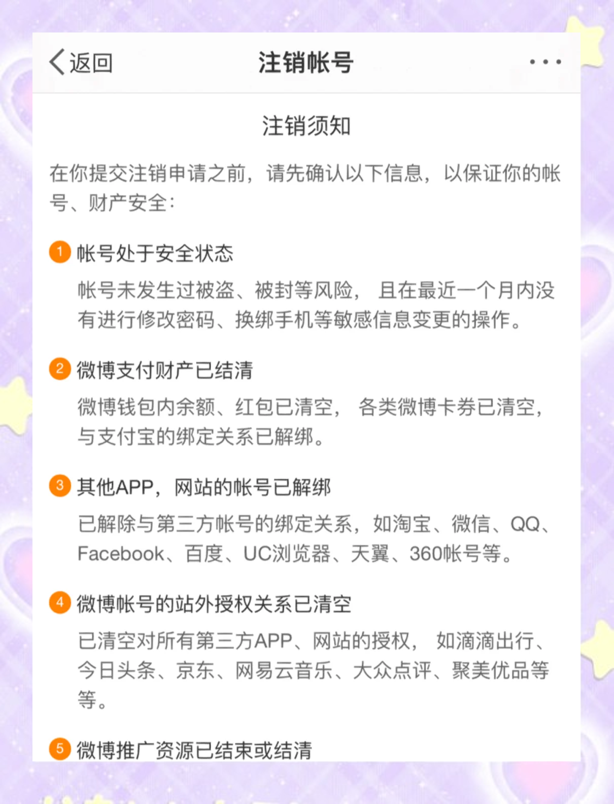 步骤一打开设置,打开账户安全,拖到底部 步骤二点击注销账号 步骤三点击申请注销,这里可能会有第三方的应用,这块需要自己解除绑定,同时自己检查是否有涉及资金或者虚拟财产的账户,确定无误后可以前往,授权管理中心进行解绑步骤四点击残忍注销,进入注销说明界面 步。