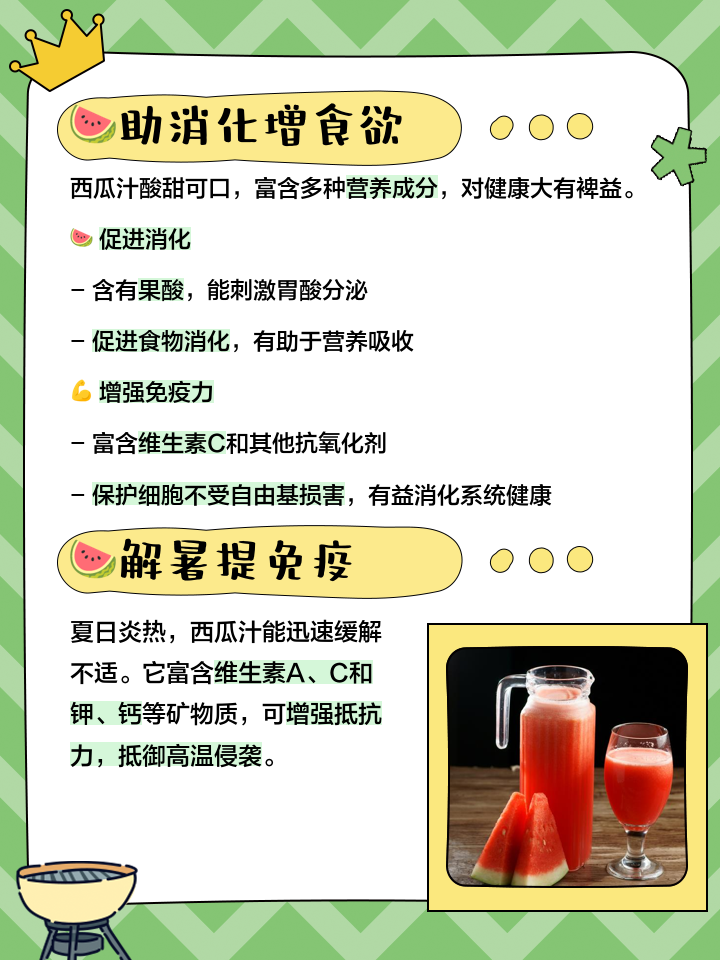 5、西瓜与盐的组合,不仅能让西瓜更加甜美,还具备消炎的效用将西瓜蘸上盐,其降火消炎消肿止痛的功效尤为显著盐不仅能够提升味觉体验,更能发挥其抗菌消炎的作用,与西瓜相辅相成,对缓解炎症具有显著效果西瓜撒盐为何会感觉更甜这背后隐藏着味觉的四条奇妙规律对比相抵相乘和变味当我们在;日本人吃西瓜加盐是为了使西瓜吃起来更甜具体原因如下味觉的对比效果日本人利用味觉的对比效果,通过在西瓜上加盐,使口腔舌头先接触到咸味,然后再接触到甜味这种相反味道的对比,能够增强甜味的主观感受加强甜味当咸味与甜味同时存在时,由于味觉的对比效果,甜味会被放大,从而让西瓜吃起来更加;消炎消肿止痛等功效盐具有一定的抗菌作用,有助于缓解口腔炎症需要注意的是,虽然吃西瓜放盐有上述好处,但盐的摄入量也应适量,过多摄入盐分可能对健康产生不利影响此外,吃西瓜本身就有解暑降温补充水分和多种营养成分的作用,无论是否放盐,都是夏季消暑的好选择。