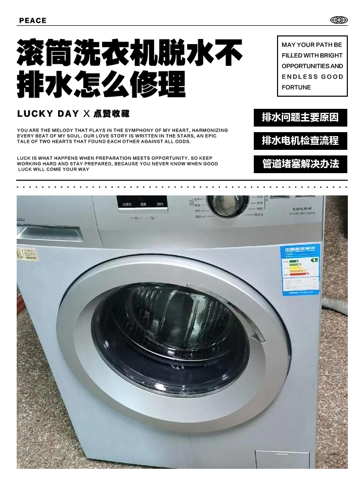 首先,衣物过多是导致滚筒洗衣机大物不能脱水的主要原因之一当洗衣机内装载过多衣物时,会增加洗衣机的负荷,从而影响脱水效果因此,为了改善脱水效果,我们可以在洗涤过程中适当减少衣物的装载量,或者将衣物分批次进行洗涤其次,水位设置不当也会影响脱水效果当水位过高时,衣物会吸收过多的水分。