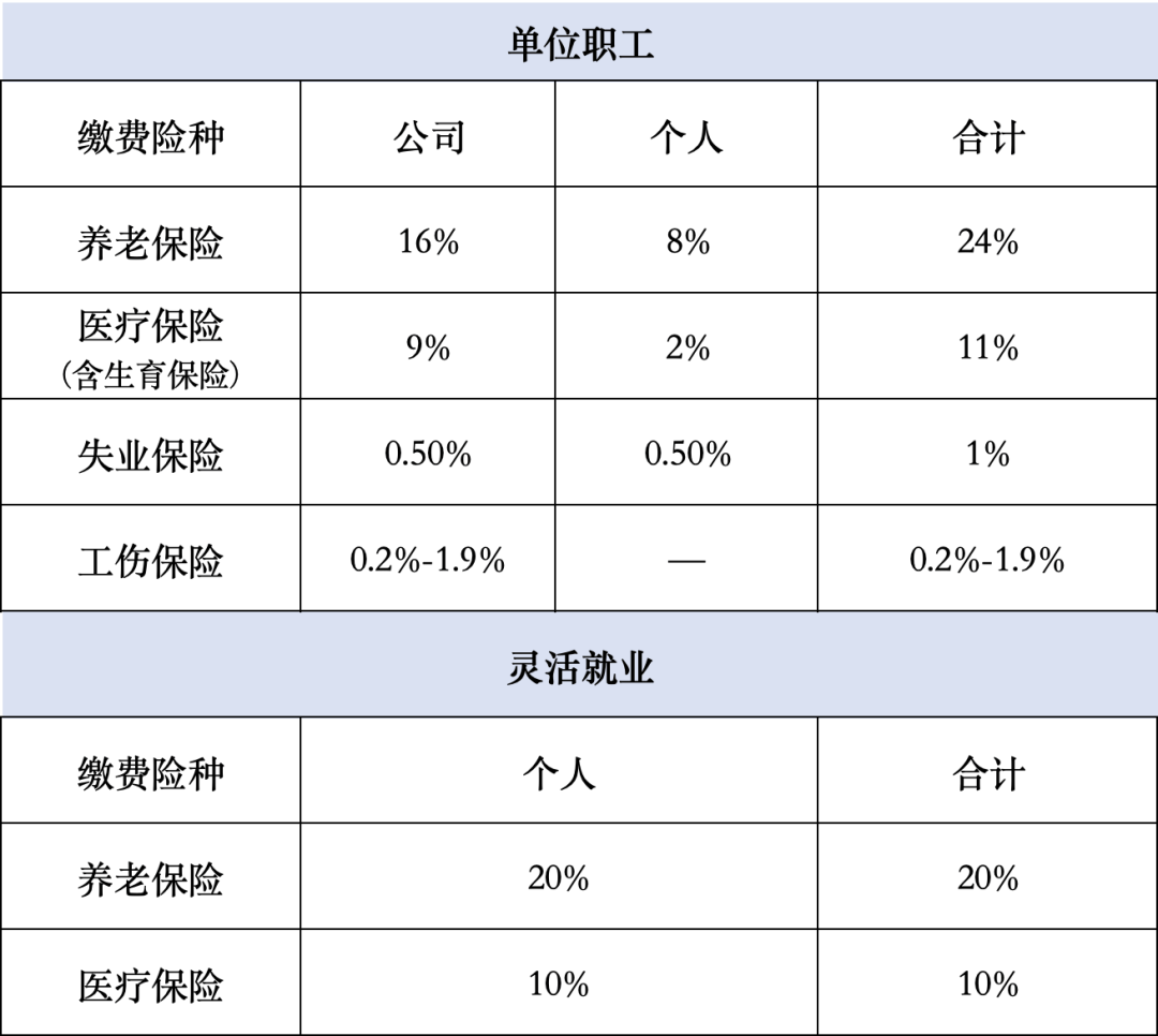 15、失业保险单位缴纳比例1%,个人缴纳比例02%生育保险单位缴纳比例08%,个人不缴费工伤保险单位缴纳比例08%,个人不缴费4缴费主体不同,灵活就业人员,个人需要承担全额的社保费用在职职工,缴纳社保所需费用由用人单位和职工共同承担,用人单位承担大部分,职工承担小部分由单位代扣代缴社保费用。
