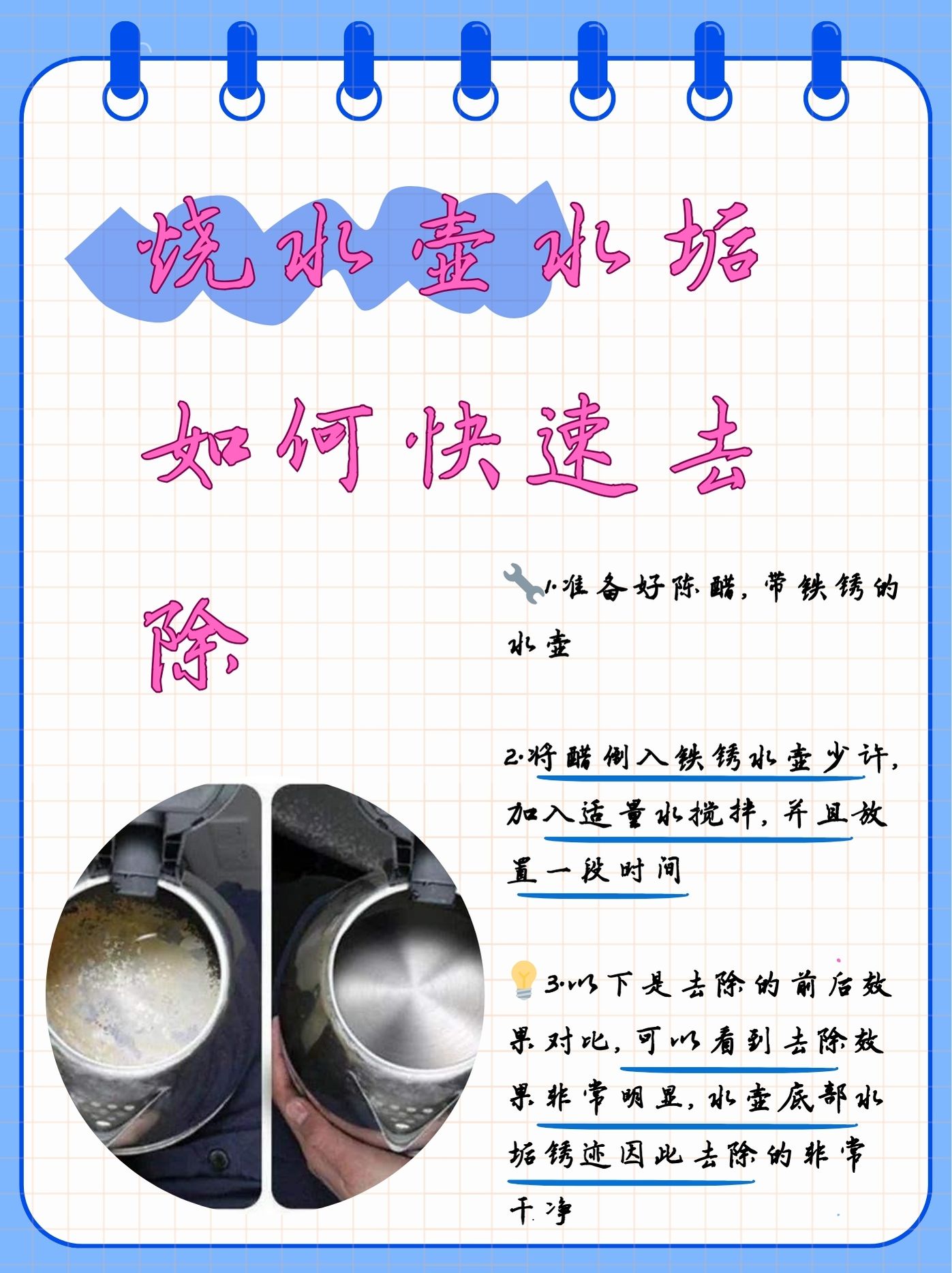 9、快速处理方案1 烧开后静置5分钟,沉淀物会沉入容器底部,倒出上层清水即可2 使用咖啡滤纸或纱布过滤煮沸的开水,建议搭配电水壶内置过滤器使用3 水壶底部白垢可用白醋浸泡醋水比例14半小时后用海绵擦除,比钢丝球更保护容器长期预防措施1 装设带有反渗透膜的家用净水器,可去除90。