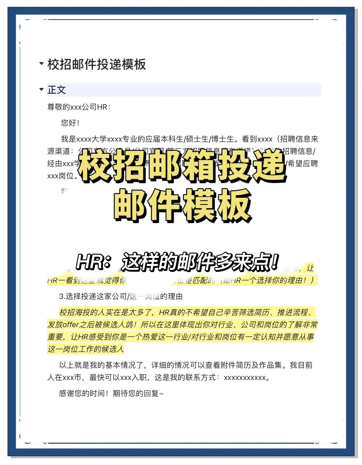都是合适的在自我介绍部分,尽量保持在100字以内,内容应包括您的姓名毕业院校和专业,尽量简明扼要,让HR一眼就能捕捉到关键信息总的来说,投递简历到HR邮箱时,要注重礼仪和格式,简洁明了地传达个人信息,同时展现出您的专业素养和对职位的热情这样才能在众多简历中脱颖而出,吸引HR的注意;邮件正文虽然简历通常以附件形式发送,但邮件正文也不可忽视正文应简洁礼貌,表达对职位的兴趣和自己的基本情况例如,开头可以写“尊敬的HR,您好我是姓名,看到贵公司正在招聘职位名称,我对这个岗位非常感兴趣,特此投递我的简历”接着可以简要提及与应聘职位相关的关键技能或经验,如“我。