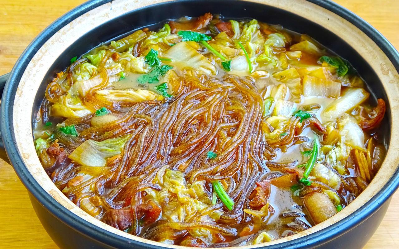 13、火腿100克2辅料猪油1汤匙盐适量葱适量姜适量浓汤宝半个白胡椒粉少许3将白菜洗净,粉丝用热水泡软备用4葱切节,姜切片,火腿切薄片5锅中油热后将姜片爆香,加火腿炒香6加水烧开,放入白菜煮熟,再加粉丝,再次烧开后放浓汤宝盐和白胡椒粉调味,撒上葱即可。