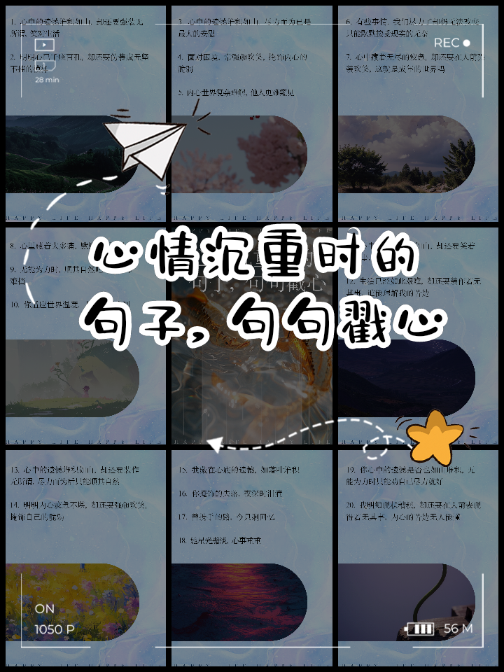 3、我推荐以下10个适合心情郁闷时发朋友圈的句子 1“有时候,心里的郁闷就像乌云一样,挡住了阳光,但总会有一束光穿透云层,照亮我前行的路” 2“生活中的困境就像一场大雨,虽然湿透了衣裳,但也洗涤了心灵,让我们更加坚韧” 3“每一个黑暗的夜晚,都预示着黎明的到来虽然现在心情郁闷,但明天一定会更好。
