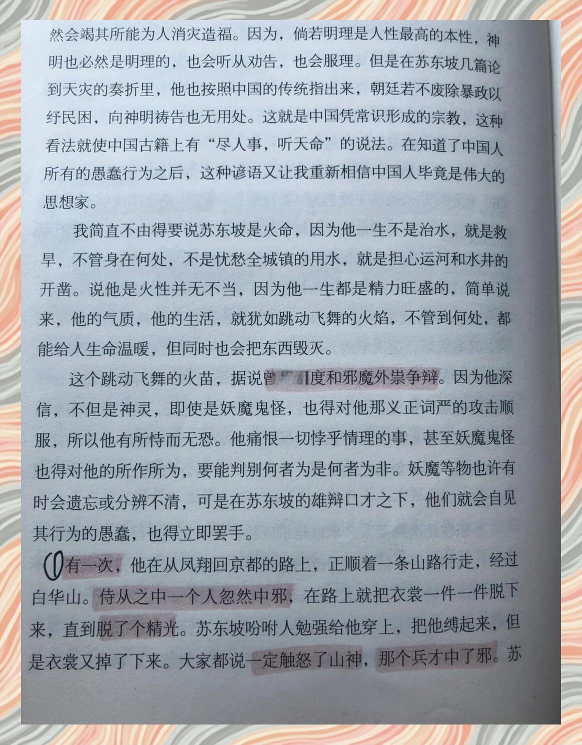 2、也正如苏东坡自己在潮州韩文公庙碑中所说的“浩然正气,其必有不依形而立,不恃力而行,不待生而存,不随死而亡者矣故在天为星辰,在地为河岳,幽则为鬼神,而明则复为人”何尝不是对自己的评说呢! 2苏东坡传读后感作文 读完苏东坡传,在看到结尾处的“万古不朽”时,心中觉得怅然若失。