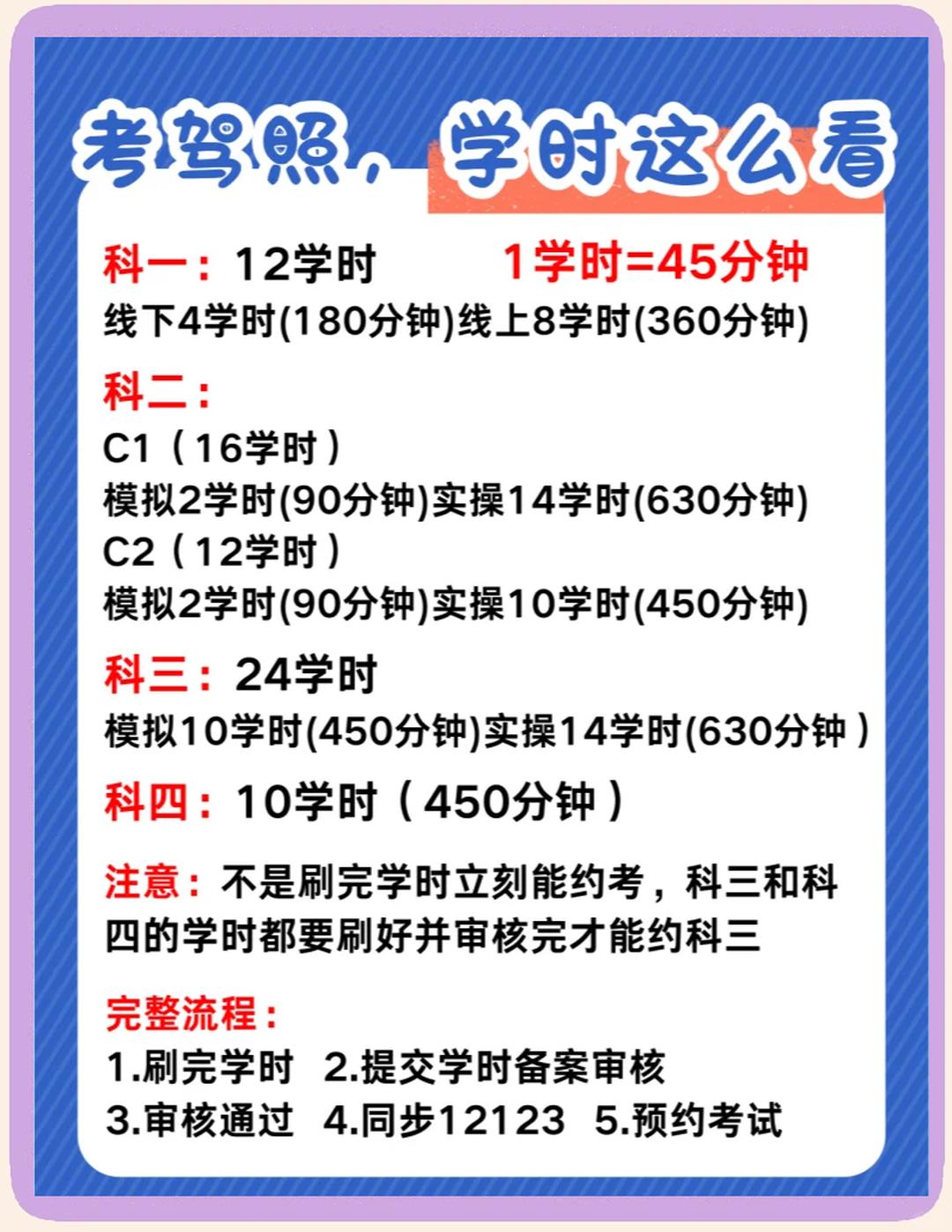 这样,每天的学习时间会逐渐累计成学时满足学时后方可约考只有当学员的学时满足相关规定后,才允许进行科目二的考试预约学时不够是无法进行约考的此外,关于科目二学时和考试预约的几点注意事项部分驾校的额外要求有些驾校在学时达到后,还会对学员进行模拟考试,以确保学员具备足够的考试能力模。