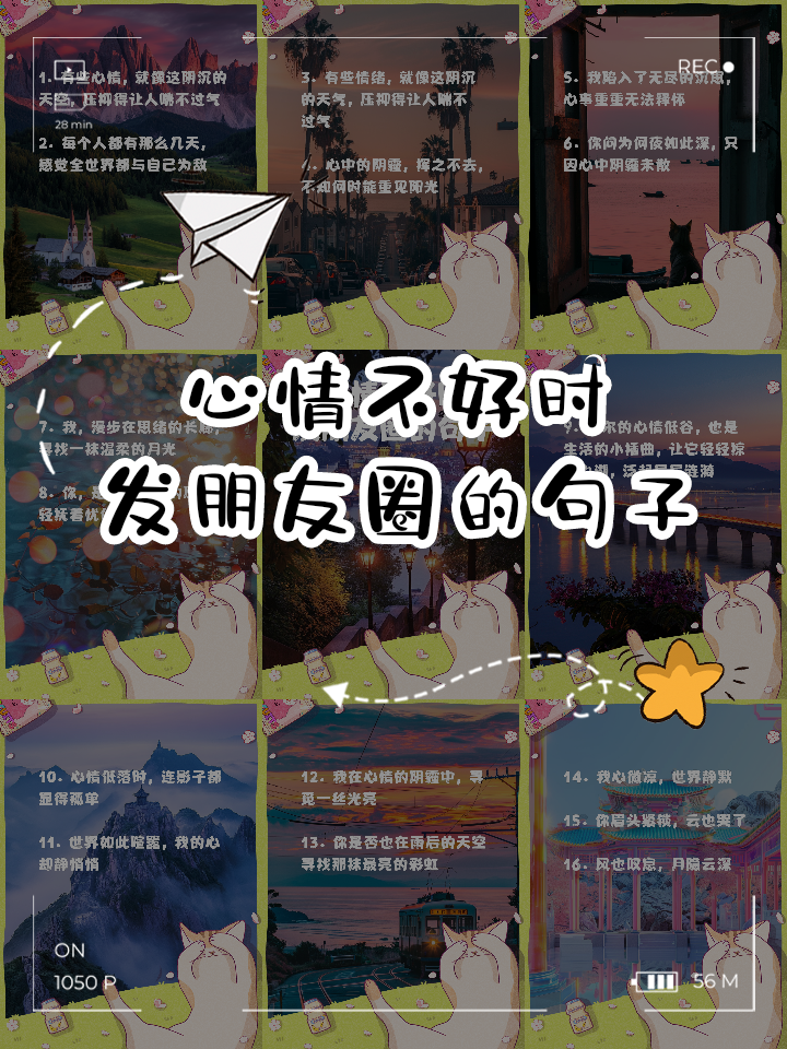 当心情不好,想要发朋友圈表达内心压抑憋屈的心情时,可以考虑以下短语简洁直接型心里装了太多事,累得慌突如其来的脾气,是积攒已久的委屈哲理思考型活得累,是因为心里装了多余的东西想得开,也就那么一回事想不开,什么都是事情感抒发型明明心如刀割,却要灿烂的微笑在你。