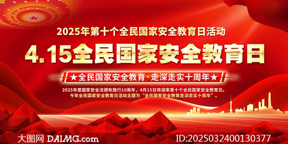 2、全民国家安全教育日是为了增强全民国家安全意识,维护国家安全而设立的节日,时间为每年4月15日,从2016年首个全民国家安全教育日开始计算,到2025年是第10个1 起始时间 2015年7月1日,全国人大常委会通过的中华人民共和国国家安全法 第十四条规定,每年4月15日为全民国家安全教育日2016年4月1。