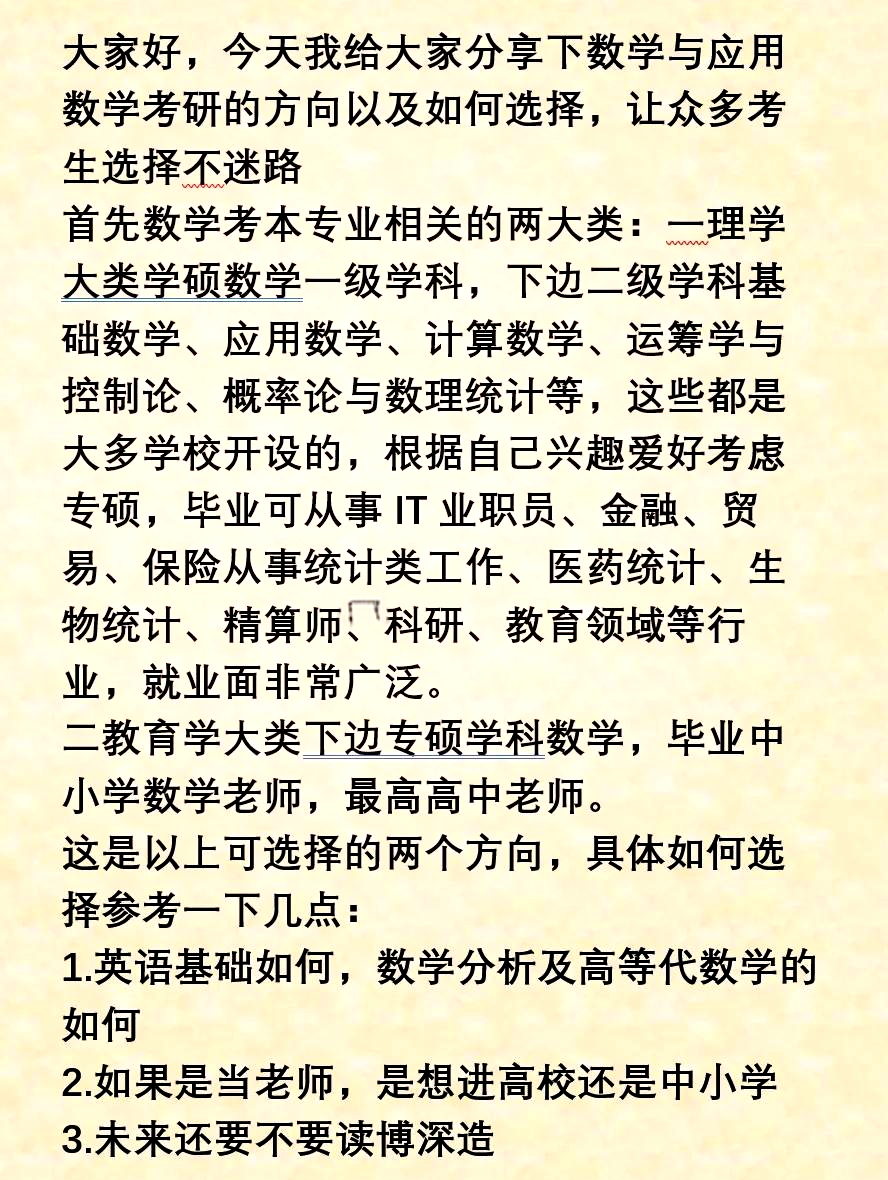 2、数学与应用数学考研主要考察以下四门科目思想政治考察内容主要考察考生的政治素养与理论水平英语考察内容侧重考察考生的语言运用与理解能力数学分析考察内容作为专业核心科目之一,主要考察数学理论与应用能力,特别是在分析学方面的知识和技能高等代数考察内容同样是专业核心科目,侧重于;数学与应用数学考研科目思想政治理论考研英语一或法语分析代数与几何这四门科目都是统考科目应用数学考研满分为500分,其中思想政治理论满分为100分,研英语一或法语满分为100分,分析满分为150分,代数与几何满分为150分应用数学考研方向1基础数学基础数学是数学下设的二级学科之一基础;数学与应用数学考研要考以下科目基础科目英语作为基础科目之一,对考生的语言运用能力有较高要求政治同样作为基础科目,考察考生的政治素养和时事了解程度数学科目高等数学涵盖微积分多元函数微积分等,要求考生熟练掌握导数积分等基本概念和方法线性代数主要涉及向量空间矩阵运算等内容;具体来说,数学分析主要考察考生对数学理论的理解和应用能力高等代数则侧重于线性代数多项式理论等内容这两门科目占据了数学与应用数学考研的重要部分考生在备考过程中,应注重提高自己的逻辑推理能力和抽象思维能力同时,还需加强英语能力,以便更好地阅读和理解专业文献思想政治科目则考察考生的。