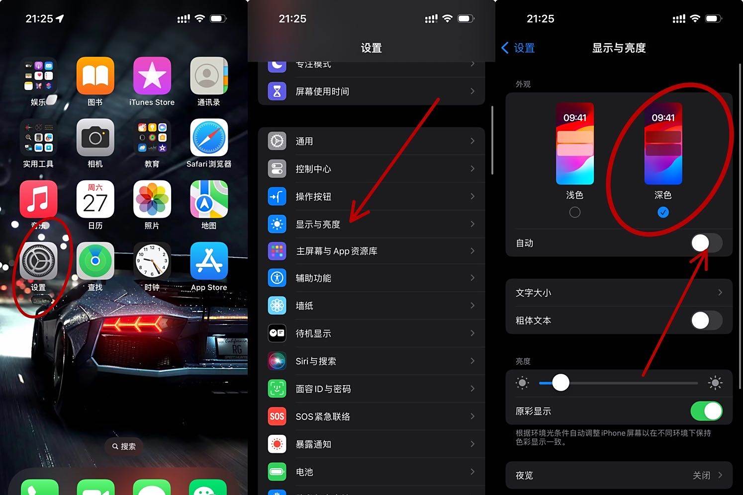 4、苹果13设置夜间模式深色模式的步骤如下进入显示与亮度设置在苹果手机主界面找到设置图标并点击,进入系统设置菜单后,选择显示与亮度选项此步骤是调整界面显示模式的核心入口选择深色模式在显示与亮度界面中,会看到浅色和深色两种模式选项直接点击深色模式,系统将自动;苹果夜间模式可通过“显示与亮度”设置中的“深色模式”开启,具体操作步骤如下进入设置界面在苹果手机主屏幕找到并点击“设置”图标,进入系统设置菜单选择显示与亮度在设置菜单中滑动屏幕,找到并点击“显示与亮度”选项该选项用于调整屏幕显示相关参数,如亮度文字大小及显示模式等开启深色模式在“显示与亮度”设置页面中。