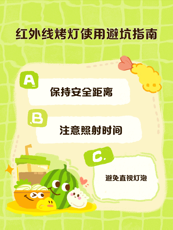 4、此外,长期使用红外线理疗灯也可能对身体健康产生间接影响例如,过度依赖这种设备进行治疗,可能会忽视其他更为有效的治疗方法同时,如果忽视了其他健康问题,可能会延误病情,造成更大的健康风险因此,在使用红外线理疗灯时,应根据个人情况谨慎选择,并在必要时咨询专业医生的意见定期进行健康检查;红外线理疗灯的使用禁忌如下一禁止直射眼睛红外线理疗灯的强光可能对眼睛造成损伤,尤其是视网膜使用时应避免灯光直接照射眼部,可通过佩戴有色眼镜或用纱布遮挡光线来保护眼睛若需照射面部区域,需确保眼睛处于安全范围外二严格控制照射时间与距离单次照射时间应控制在20至30分钟内,避免长时间暴;使用红外线理疗灯泡时的注意事项如下保持适当距离以个人感觉为准,确保照射的舒适度,不要过近或过远避免直视绝对不能直接用眼睛对准红外线灯泡,以防对视力造成损害注意防火确保灯泡周围无易燃物品,以防火源引发的意外保证通风散热使用期间,确保设备的通风和散热状况良好,以防过热引起。